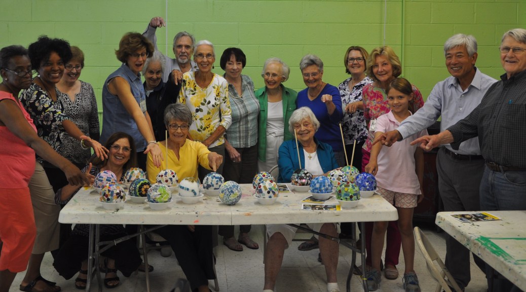 We spent the morning at Center for the Creative Arts (CCA) in Yorklyn, DE designing (?!) and making a garden globe from recycled and broken glass. Our instructor was Michelle Reilly, the original owner of “Everyday Artists Paint Your Own Pottery” Shop in Hockessin. Thank you Michelle for the fun workshop.